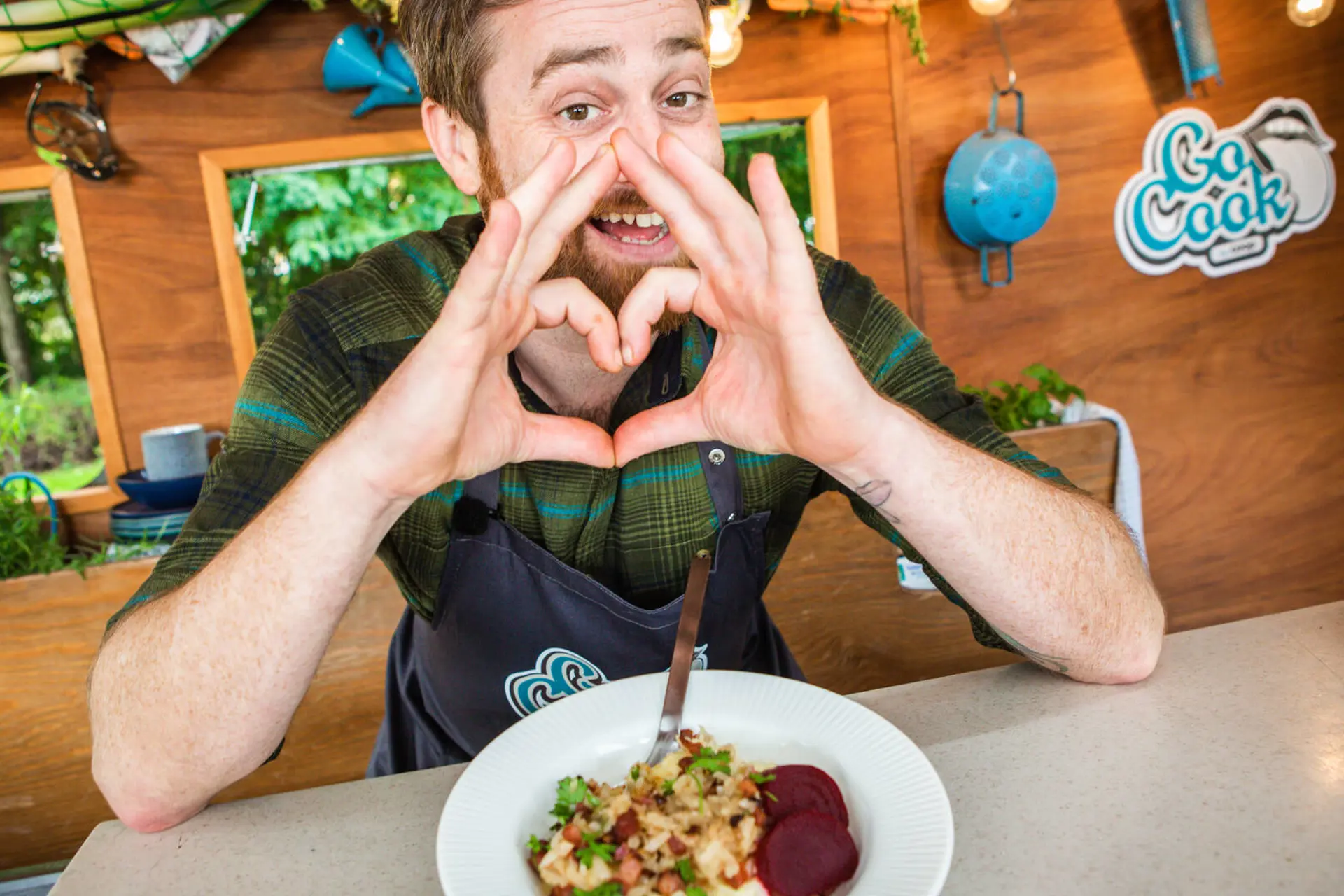 Køkkenredskaber til brændende kærlighed med rodfrugtmos
