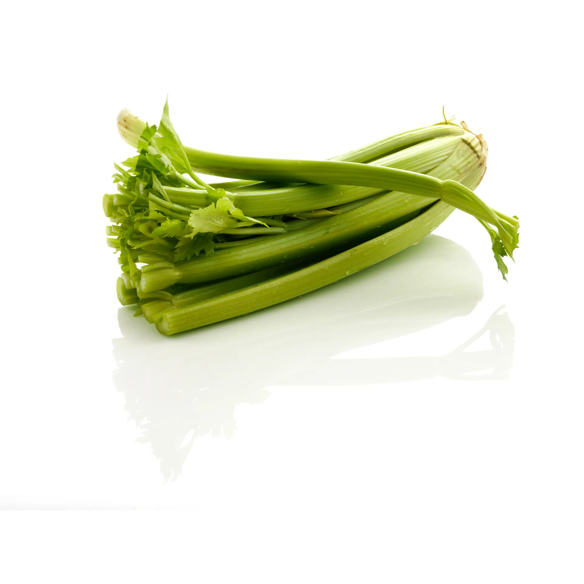 Skær roden af bladselleri-stilkene. Skyl alle stilkene, og lad dem dryppe af.
